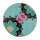 The elegant design & colour palette of this charcuterie board echoes the Parlour Room decors of the Rockefeller's, Roosevelt's, & Broadway Elites during the early years of the 20th Century. The floral motif in shades of blue-green, creamy raspberry pink, Black, Cream & Gold is mounted on a solid light teal background, creating a look that is both old & new.