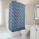 Traditional Japanese Asanoha, or star pattern shower curtain in dark navy or indigo blue outlined in white