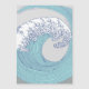 A big wave is this coastal themed artwork. A beachy great wave in soft blue and classic Japanese artwork, this wave is based on a vintage Japanese ocean wave art print.