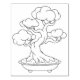 Simple black and white illustration of a Japanese twisted bonsai tree in a shallow tray. Bonsai is a Japanese art form using trees grown in containers. Made for easy colouring.