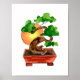 traditional watercolor and ink artwork of a little japanese bonsai tree in front of the sun as a decorative poster print.