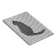 Mixed media digital graphic of a Japanese inspired sitting cat, in a stylised floral, against a kimono print background - Black and white with shades of silver grey / grey