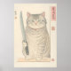 Japanese Cat Print Funny Tabby Cat with Knife, Ukiyo-e Kitchen Art