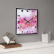 Springtime fresh floral image. Fancy Japanese cherry tree blossoms in soft delicate pinks and gentle whites. Some bright pink and luminous yellow colored swirls and twinkling lights surround these blossoms giving it a magical dreamy effect, like something from a fairy universe. Faded handwritten text in french gives it a romantic flair. Nice for those who like girly, feminine, pastel designs with a floral theme.