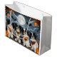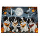 Unleash the spooky spirit with this eerie Halloween design featuring a pack of dogs under a dark, moonlit sky, surrounded by flying bats and glowing pumpkins. Perfect for those who love a touch of frightful fun with their furry friends!