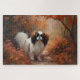 Japanese Chin in Autumn Leaves Fall Inspire Jigsaw Puzzle