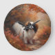 Japanese Chin in Autumn Leaves Fall Inspire Large Clock