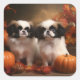Japanese Chin Puppy Autumn Delight Pumpkin Square Sticker