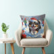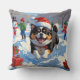 Japanese Chin Running in Snow with Christmas Hat Cushion