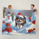 Japanese Chin Running in Snow with Christmas Hat Fleece Blanket