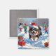 Japanese Chin Running in Snow with Christmas Hat Magnet