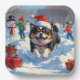 Japanese Chin Running in Snow with Christmas Hat Paper Plate
