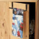 Japanese Chin Running in Snow with Christmas Hat Tea Towel