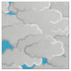 Modern take on a traditional Japanese cloud pattern fabric - stylised clouds in silky gradients of white to pale silver grey / grey, accented with glimpses of clear blue sky