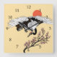 Japanese crane bird and blooming sakura square wall clock