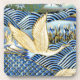 Cranes are symbols of happiness, balance, longevity and eternal youth throughout Asia. This detail of a Japanese tapestry shows flying cranes over water, in tones of ochre (simulating gold) and blues. Customise to your liking!