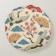 Japanese Crane Sakura Pattern Traditional Japanese Round Cushion