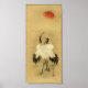 Japanese art titled "Cranes and Sun" by artist, Kano Tôshun Yoshinobu (1747–1797) created during the Edo period in the 18th century. Cranes (symbol of long happiness & good fortune) along with the brilliant redness of the Sun, make the perfect gift for the lover of ancient Asian art - a beautiful piece for any wall! Original painting located in the Museum of Fine Arts Boston.