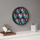 Japanese Cranes, Coral, Turquoise and Black Clock