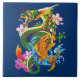 Japanese Dragon Koi Lotus Mythical Asian Blue Ceramic Tile