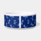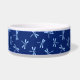 Pet bowl in a traditional Japanese dragonfly, or tombo pattern, also called katsumushi (“winning bugs”) by samurai warriors, who used dragonfly motifs to invoke victory - light sky blue dragonflies on a dark cobalt / navy blue background