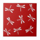 Japanese Dragonfly Pattern, Deep Red and White Ceramic Tile