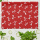 Japanese Dragonfly Pattern, Deep Red and White Tea Towel