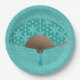 Japanese Fan in Asanoha pattern, Turquoise Paper Plate