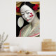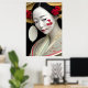 Japanese Floral Geisha Red Gold Fantasy Art Poster