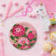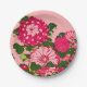 Japanese Flower Border, Fuchsia and Coral Pink Paper Plate