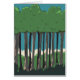 Japanese Forest trees linocut beautiful illustration print.