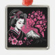 Japanese Geisha Mount Fuji Japanese Cherry Blossom Metal Ornament