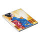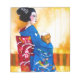 Original modern Japanese style art from a painting by Sacha Grossel of a Japanese Geisha with a royal blue kimono and red obi. This art has been influenced by Asian design and Japanese art.
