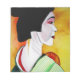 with original art design from watercolour painting by Sacha Grossel of Japanese Geisha with green kimono. This geisha is inspired by Asian, oriental, Japanese style and has a yellow background.