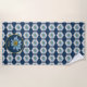 Japanese Geometric Lily Floral Pattern Monogram Beach Towel