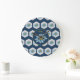 Japanese Geometric Lily Flower Pattern Monogram Large Clock