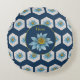 Japanese Geometric Lily Flower Pattern Monogram Round Cushion