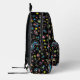 Japanese Kawaii Culture Doodles on Black Monogram Printed Backpack