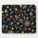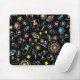 Japanese Kawaii Culture Doodles on Black Mouse Pad