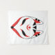Stylised red, black, and white fox mask inspired by traditional Japanese kitsune mask.