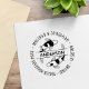 An elegant address stamp for a couple with a simple black and white vector illustration of a pair of Japanese koi fish circling each other. The family name is written across the illustration while the first names and the address are printed around it. Please note, you may need to adjust the information you enter by adding or deleting some characters or spaces, to make the name and the address properly aligned.