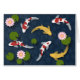 Beautiful minimalistic vector illustration of colourful Japanese koi fish swimming among the water lilies in a pond. Koi is a brightly coloured ornamental variety carp domesticated in Japan.