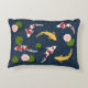 Beautiful minimalistic vector illustration of colourful Japanese koi fish swimming among the water lilies in a pond. Koi is a brightly coloured ornamental variety carp domesticated in Japan.