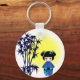 Japanese kokeshi doll at bamboo during sunrise key ring