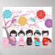 Explore the world of the Japanese Kokeshi Dolls and cherry blossoms with this beautiful design.