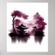 Watercolor painting of a Japanese landscape by the lake. Decorated in purple and black tones. Digital. Also available for download!