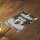 A personal sized, spiral bound notebook that features the photo image of a traditional Japanese garden lantern along with a group of mallard ducks resting on its base. Use as a journal or to keep important notes.