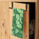 Japanese Leaf Print, Emerald and Lime Green Tea Towel