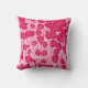 Vintage Japanese kimono print throw pillow - an all over pattern of stylised leaves, alternating positive and negative space, in deep fuchsia / raspberry pink and soft pastel pink