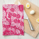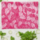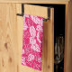 Japanese Leaf Print, Fuchsia and Light Pink Tea Towel